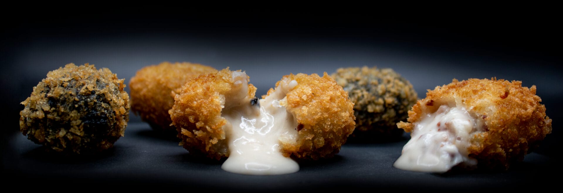 Croqueta y Presumida te trae croquetas como las de casa: crujientes, cremosas y llenas de ingredientes de primera calidad. Croquetas de Jamón, Pollo, Bacalao y una extensa gama de sabores que tendrás que descubrir. Prueba nuestra gama de Croquetas Cremosas, empanadas con Panko y con un relleno semi-líquido. Si quieres variedad, también te ofrecemos nuestras Bolas en Tempura, Crepes, y más delicias. ¡Corre que se enfrían!