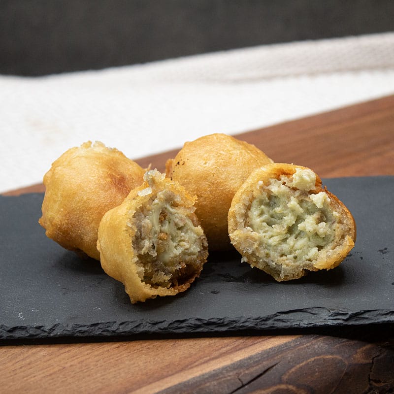 Las Bolas de Queso Cabrales en Tempura son un bocado que equilibra a la perfección lo crujiente y lo cremoso. Un queso untuoso y con un aroma intenso y una bechamel ligera encerrados en una bola de tempura. ¡Bocados de ración que piden comerse calentitos y en compañía!