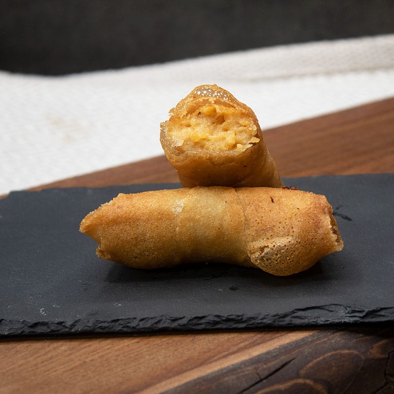 Las Crepes de Txangurro son un bocado crujiente por fuera y cremoso y lleno de sabor por dentro. Genuina esencia del Cantábrico y potente sabor a Txangurro combinados con una suave bechamel forman un conjunto que busca satisfacer las exigencias de los más gourmet. Los Crepes de Txangurro de Croqueta y Presumida son un plato perfecto para fiestas y celebraciones. ¡Encargalos ya!