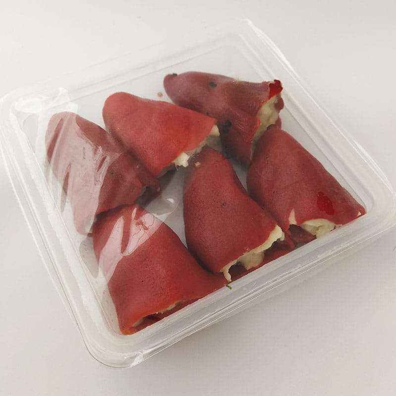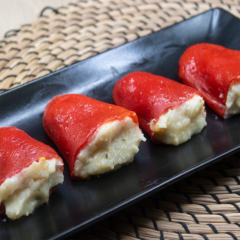 Estos Pimientos Rellenos de Bacalao están cocinados con una Bechamel hecha a base de leche de caserío, un Bacalao de categoría, y unos Pimientos de Piquillo tiernos y carnosos. No les agregamos salsa para que tú utilices la que más te guste y les des tu toque personal. ¡Pon sobre tu mesa estos Pimientos rellenos de Bacalao y cuélgate una buena medalla de Chef!